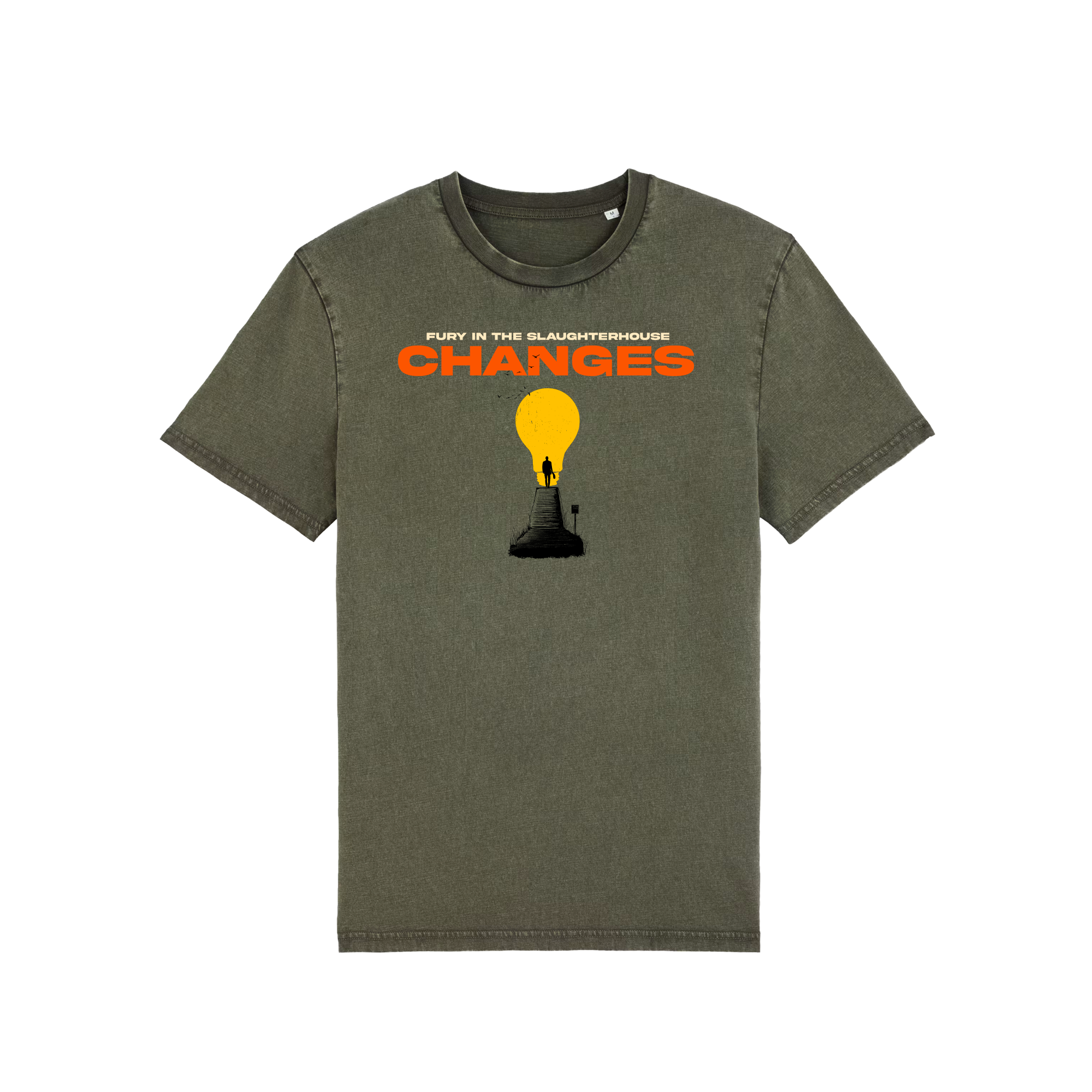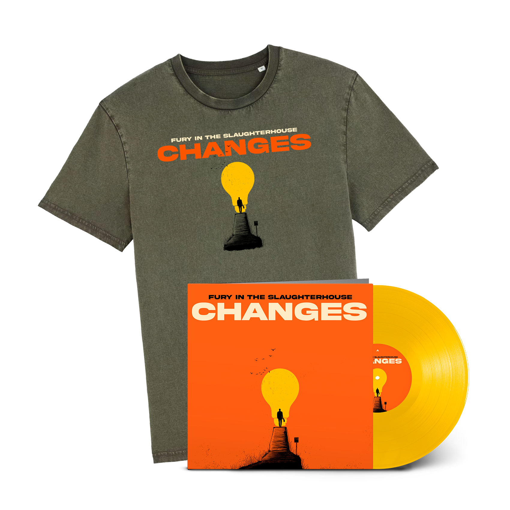 Fury in the Slaughterhouse "Bundle: LP (gelb) - CHANGES + T-Shirt, vintage khaki - handsigniert"